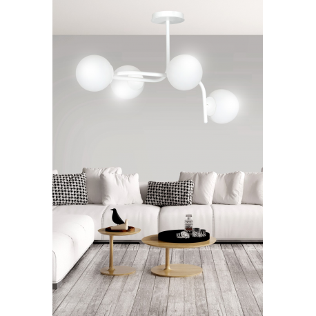 Plafony sufitowe KALF to doskonałe uzupełnienie zarówno nowoczesnych, jak i klasycznych wnętrz. Najbardziej efektownie prezentują się zawieszone nad stołem lub wyspą, nadając pomieszczeniu niepowtarzalny nastrój. Delikatny, mleczny klosz dodaje serii KALF elegancji i lekkości. Minimalistyczna forma doskonale oświetli nawet duże powierzchnie i idealnie wpisze się w większość aranżacji domowych. To minimalna forma, która zapewnia maksymalny efekt. Nasze lampy serii KALF są wykonane z materiałów najwyższej jakości, aby zapewnić trwałość i satysfakcję z użytkowania. Dostępne są w kolorze czarnym lub białym, na 2, 3 lub 4 źródła światła.