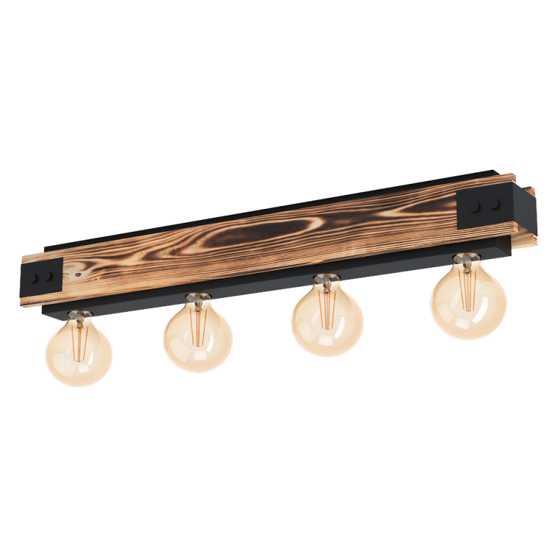 Lampa sufitowa LAYHAM, posiada korpus wykonany z czarnego metalu oraz z drewna. Model ten idealnie wpasowuje się w trend vintage i industrial