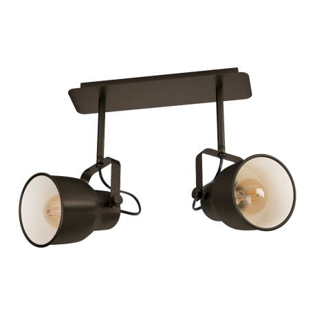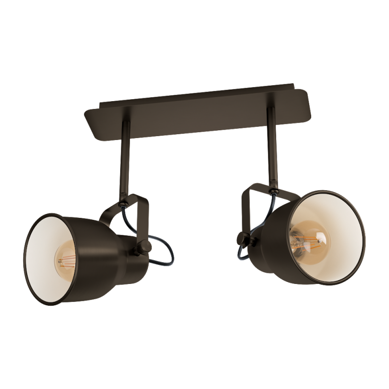 MITCHLEY - podwójny reflekorek na listwie, lampa ścienno sufitowa w stylu Vintage. Model ten wykonany jest z metalu kolorze ciemnego brązu, klosze wewnątrz w kolorze kremowym