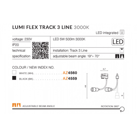 LUMI LED LAMPA DO 3-fazowego SZYNOPRZEWODU AZZARDO AZ4558