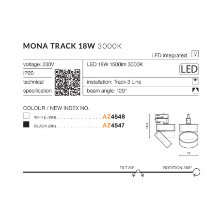 MONA LED 18W 3000k LAMPA DO 3-fazowego SZYNOPRZEWODU AZZARDO AZ4547