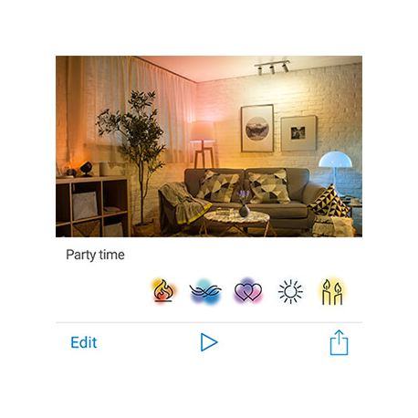 Teraz dzięki regulowanym kolorom i odcieniom bieli, eksperci WiZ zaprojektowali dynamiczne tryby oświetlenia, które całkowicie przyćmiewają wszelkie inne dostępne na rynku inteligentne produkty oświetleniowe. Podobnie jak wielkie utwory muzyczne, pomysłowo zsynchronizowane i dobrane, nasze tryby sprawiają, że każde pomieszczenie ma oszałamiającą atmosferę świetlną.